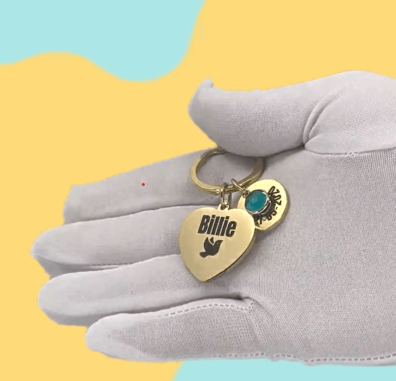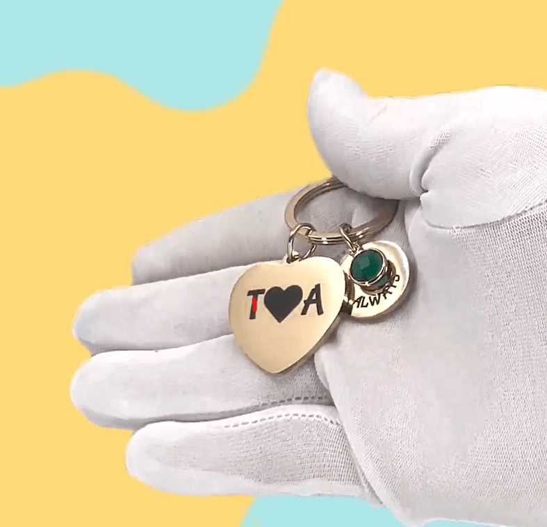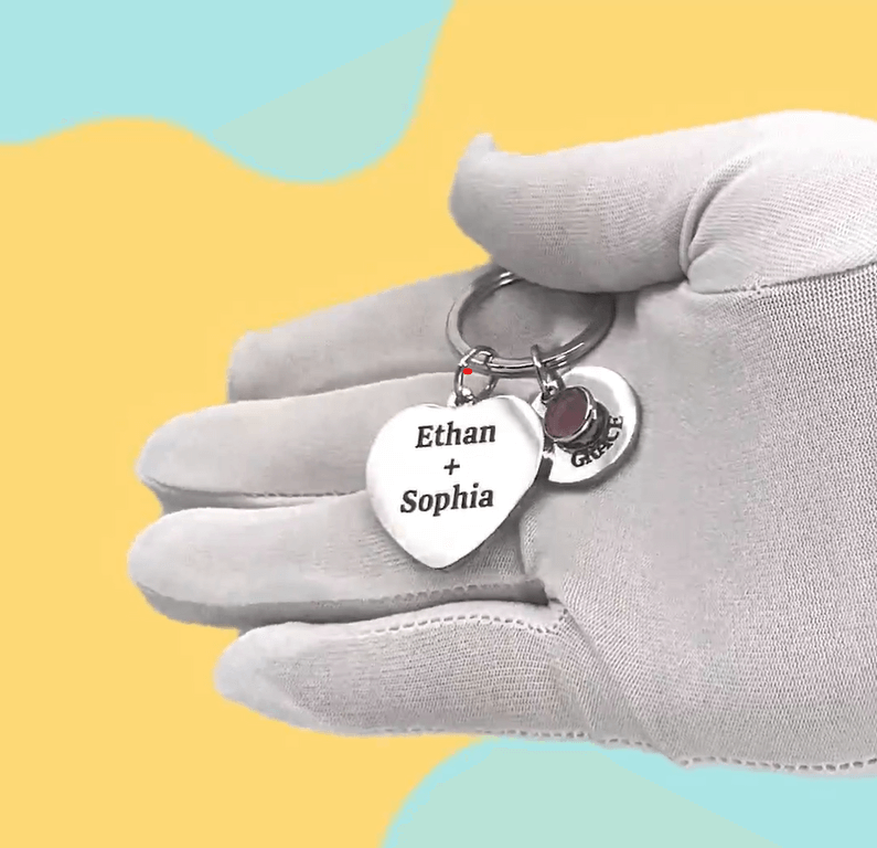3. Incisione personalizzata: incidiamo abilmente i dettagli scelti sul portachiavi e sui ciondoli, garantendo una finitura di alta qualità.