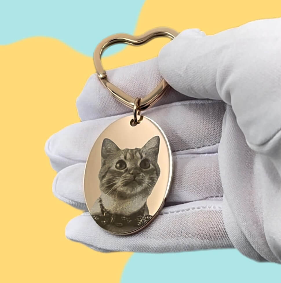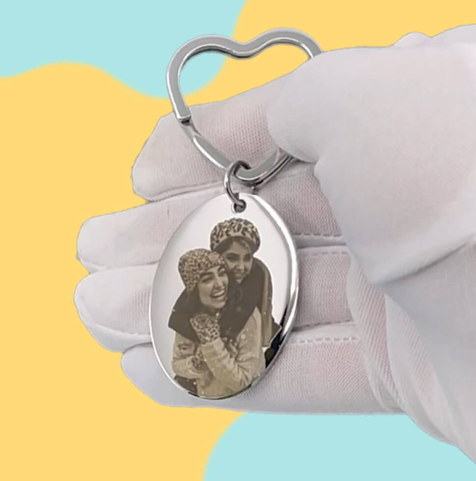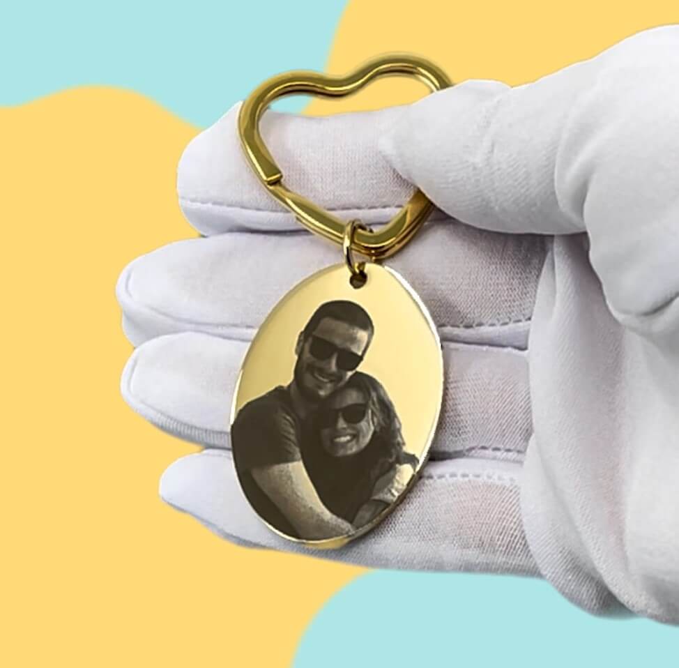 Portachiavi Personalizzato con 2 Rotondi e Foto Incisa