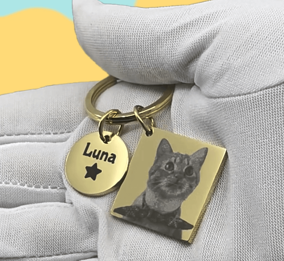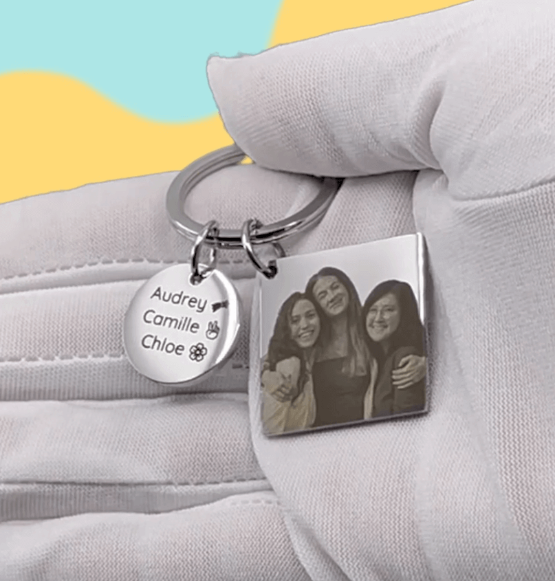 Portachiavi Personalizzato con 2 Rotondi e Foto Incisa