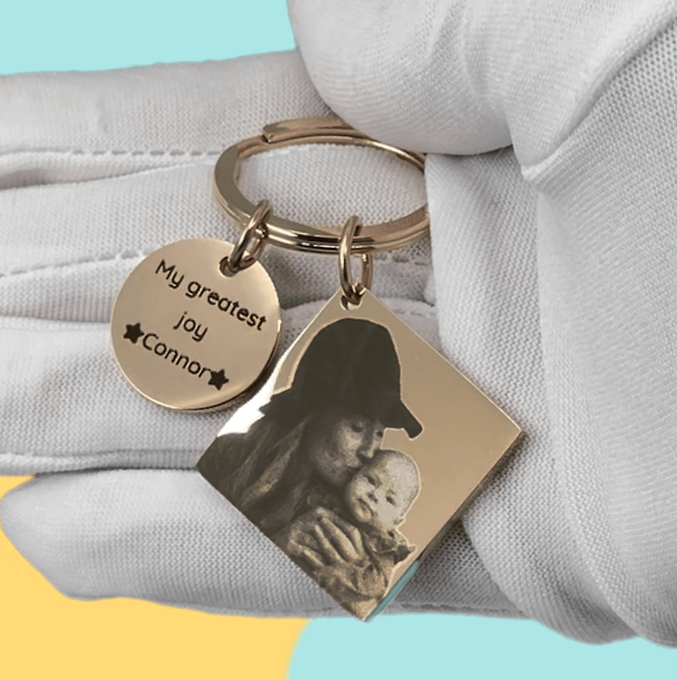 Fai un regalo unico e personalizzato con i nostri 2 cerchi personalizzati con portachiavi con foto incisa, che ti consente di incidere sia il cerchio più grande con un'immagine personalizzata sia il cerchio più piccolo con del testo.
