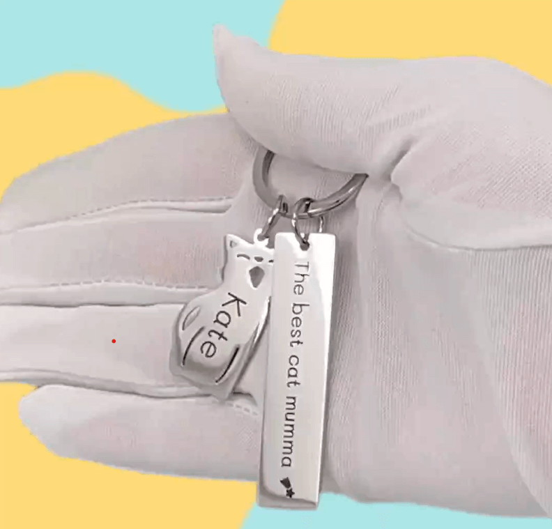 ♥ Testo e carattere personalizzati: personalizza il portachiavi rettangolare e il ciondolo a forma di gatto con nomi o brevi testi. Scegli tra una varietà di caratteri per creare un regalo davvero unico.